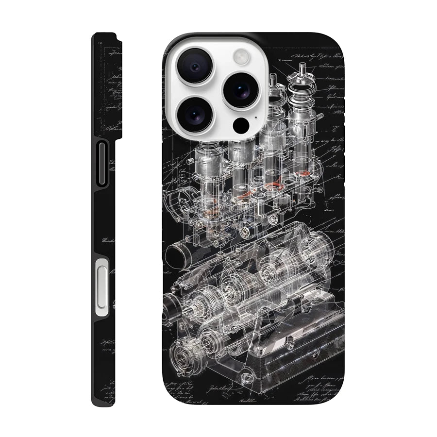 Proteja su hardware con el corazón de la ingeniería de alto rendimiento. Esta carcasa teécnica de Estética de Ingeniería deconstruye la culata DOHC (Doble Árbol de Levas en Cabeza), donde la velocidad del aire y la eficiencia térmica colisionan a 12,000 RPM.